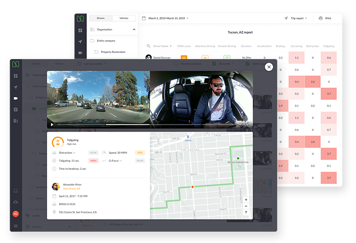 In addition to coaching the driver in real-time with In-Vehicle Alerts, the Nauto Device automatically uploads the event for fleet managers to view in Nauto’s Fleet Safety Application. To provide fleet managers with actionable insights, tailgating behaviors are incorporated into a fleet’s Visually Enhanced Risk Assessment, or VERA Score™. This proprietary score enables fleet managers to manage their fleet safety where it matters most and quickly identify coachable opportunities.