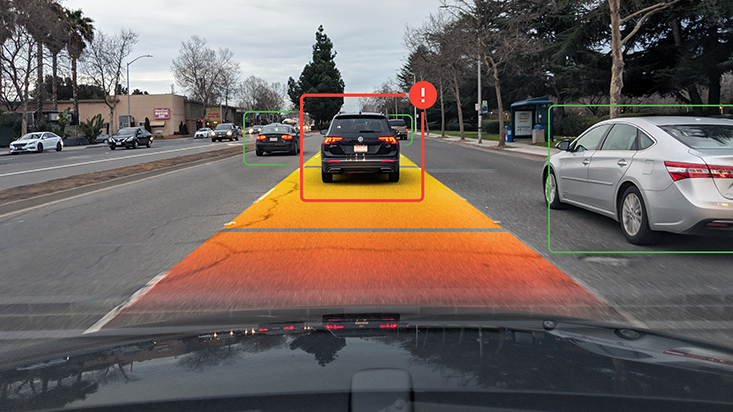 Our easy-to-install Nauto Device is embedded with computer vision and proprietary machine learning algorithms. This enables Nauto to detect high-risk behaviors in real-time and immediately coach drivers with automated In-Vehicle Alerts. In 2018, we started with In-Vehicle Alerts for Distracted Driving and have since helped fleets across industries reduce distracted driving by over 50%. Now, we’ve extended our machine learning algorithms to road-facing camera to power our new Tailgating feature. The AI algorithms embedded in the Nauto device use sensor fusion to identify and measure the distance from the vehicle directly ahead of drivers. With the calculated distance and real-time speed data, the algorithm dynamically calculates time to headway, or the time interval for two vehicles to pass the same reference point. Based on the calculated time to headway, the Nauto Device sends an automated In-Vehicle Alert to motivate the driver to maintain a safer following distance.