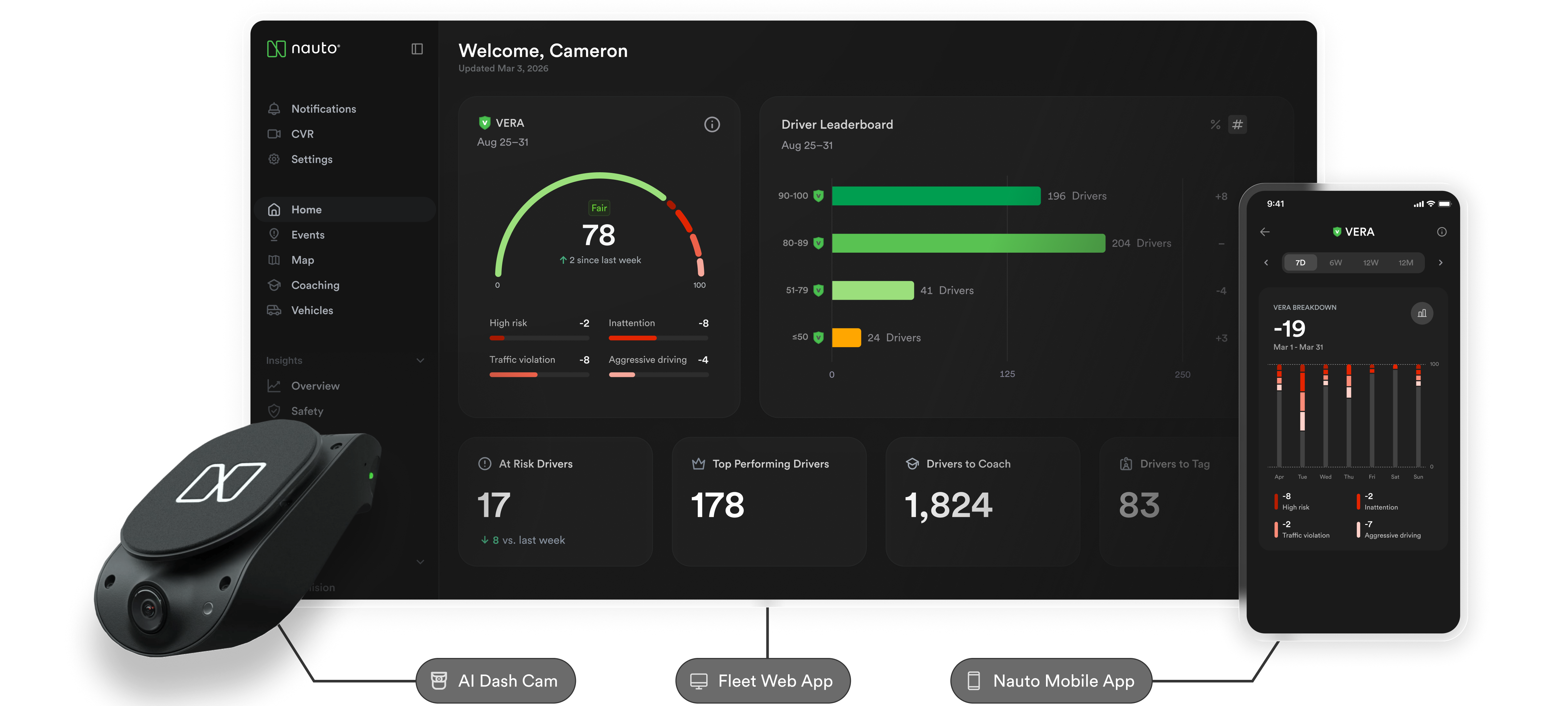 Quickly identify high-risk drivers, prioritize coachable events, and document driver training discussions for accountability.